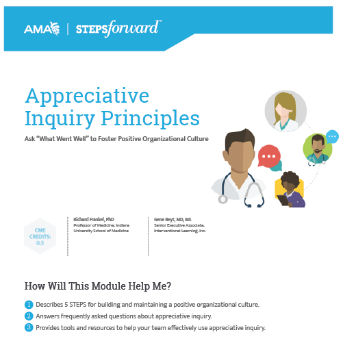 (May, N., Becker, D., Frankel, R., et al. Appreciative Inquiry in Health Care Positive Questions to Bring Out the Best. Brunswick, OH: Crown Custom Publishing, Inc.; 2011.)
