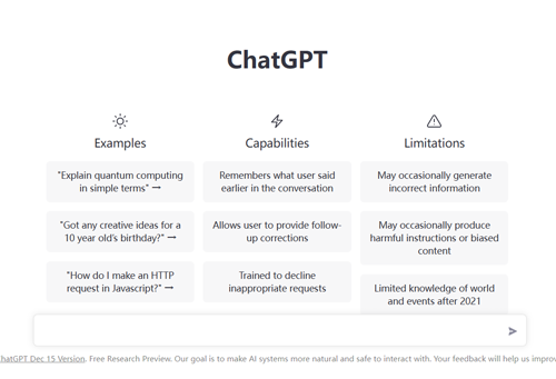 不用说ChatGPT的功能,ChatGPT的功能强大到令人吃惊的程度。ChatGPT可以写诗、写代码、帮助小朋友写作文。据说,有一位小朋友的作文差点让老师相信是小朋友自己写的。老师说,当他知道是ChatGPT写的之后,他感觉到很恐怖。ChatGPT可以帮助销售人员编写创意文案,只要提供相关的产品、价格和市场信息。如此功能强大的语言系统实在是令人非常吃惊,很多网友开始使用ChatGPT来帮助自己日常的工作,如编写年终的工作报告等,网友惊呼 ChatGPT已经被玩坏了。
