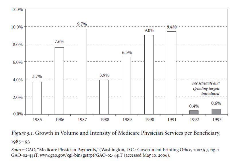 在美国医疗体系改革过程中,从上个世纪六十年代,国会通过了相关法律,为老年人提供医保即Medicare以后,由于患者不再掏腰包为医疗买单,医师在医疗过程中的报酬是 按照其所提供的医疗服务的总费用来确定的,医疗的收费按照“通常的、习惯的、合理的(UCR)”标准来收费,在经济利益的鼓动下,医师通常情况是想尽办法,无论是在单价还是在总额上,尽量多收取费用,以增加自身的报酬。从六十年代到八十年代,美国医疗费用的总支出增长非常惊人,几乎达到复合年增长率16%左右,这样的增长引起了多方的关注。
