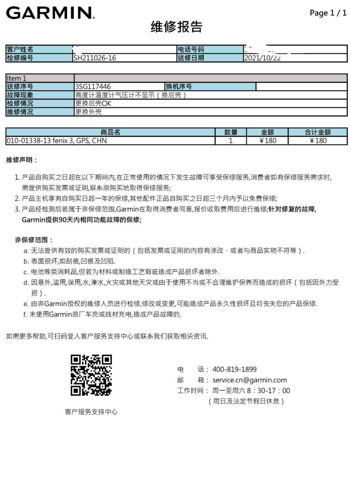 一直以来网上传说佳明的售后服务很差,简直垃圾的不能再垃圾。这次远景顾问的fenix3出现故障,考虑再三还是将fenix3寄修,体验了一次佳明的售后服务,结果与网络上所说的差距太大,佳明售后服务的规范性、专业性给人印象深刻。如果给这次服务过程评分的话,远景顾问觉得至少是优良。