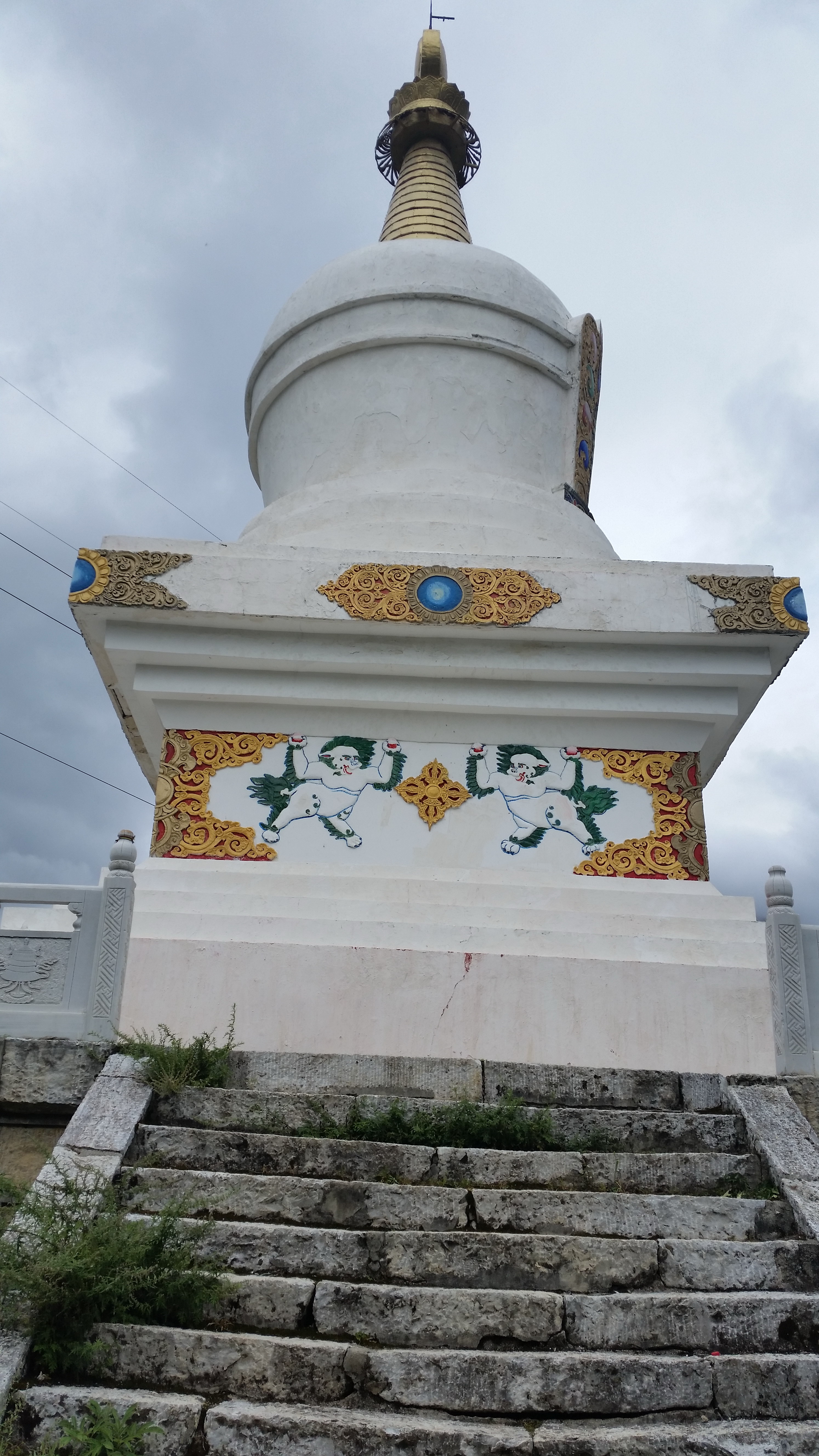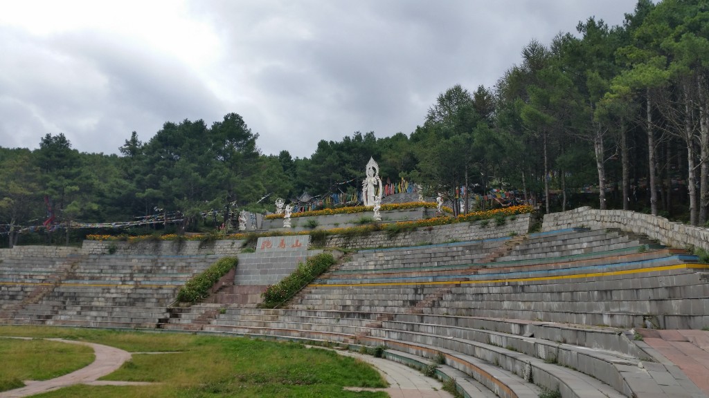 从广场沿着石阶而上,走到半个小时,来到跑马山的山顶,这里和郭达山相向而立,能够看到郭达山上的雕像。山顶不大,但有座很小的寺庙,静静的在山顶,脱掉鞋进入寺庙膜拜,能够听到自己的心跳和外面呼呼作响的风声。突然见发现,这个不起眼的跑马山的伟大了,在纷纷的尘世,有这么个能够清修的地方,真是佛祖赐予的福气啊。