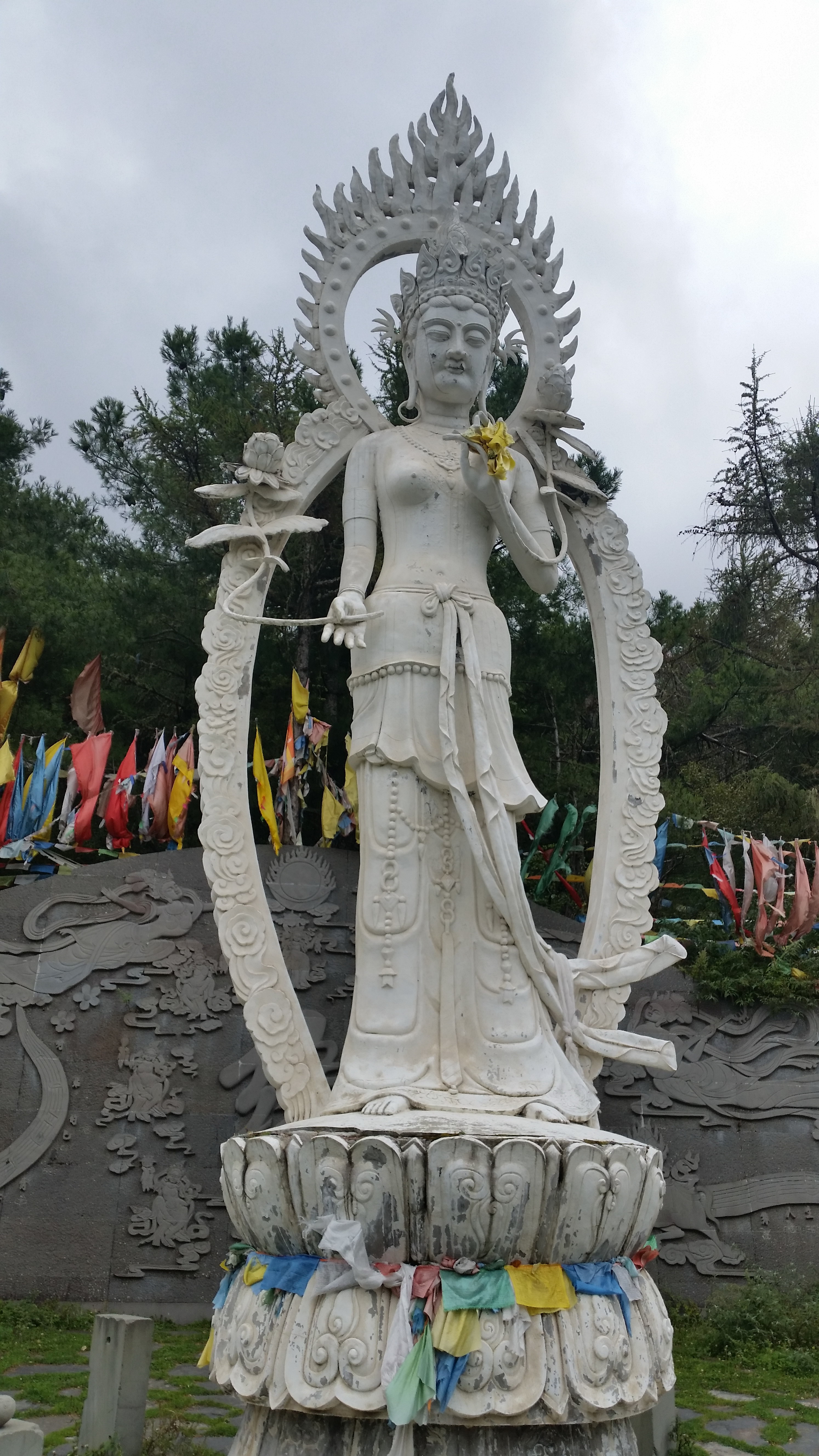 真正的跑马山景区确实不大,有广场逛,白塔和林海。广场是每年赛马会的地方,广场不大,周边的雕像非常的精美。白塔在蓝天白云中屹立着,为全城的人们祈求安康,在白塔转了三转,许下无数的祈求与祝愿。长廊和林海是完全的人造景点,在林海中静静的听见涛声,让人想起了一首老歌。