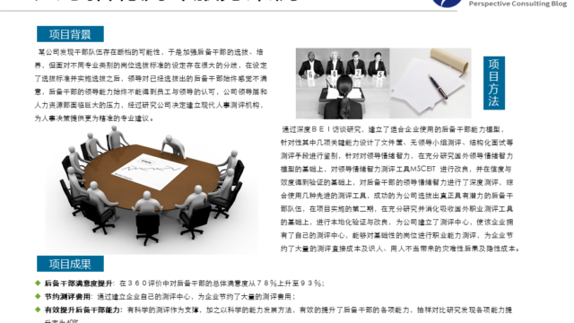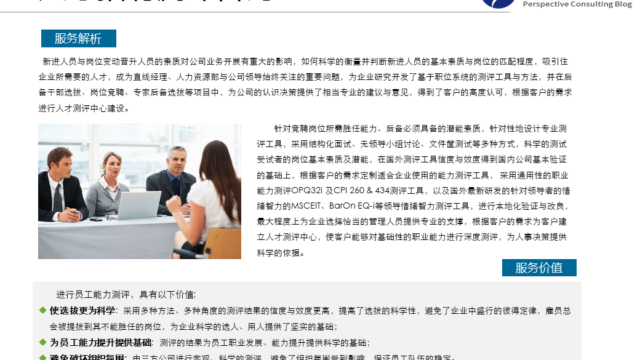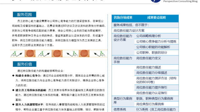 岗位胜任能力体系的建立是员工发展的基础,远景在掌握BEI访谈及心理探视技术( psychological probe)等经典的能力模型研究方法的基础上。结合职能解析及英国职业认证体系,为客户量身定制能够在员工发展方向使用的岗位胜任能力体系。从员工发展体系上看,企业普遍存在重培训轻培养的问题,针对员工不同的职业成长阶段,为形成多种培养方式,远景咨询在消化国外企业内部导师制与行动学习的基础上,将测评、培训、企业导师制及行动学习揉合,并借助信息管理系统落地实施,形成了镶嵌式的员工发展方法、理论及实践体系。 在员工发展咨询实践中,经过远景顾问服务及辅导的企业,建立了基于岗位胜任能力的全方位的人才培养体系,并采用科学的人才测评工具方法,使员工的发展真正具有了科学的依据与内涵,提升了员工整体的岗位胜任能力,增强了企业人力资本与市场竞争能力。