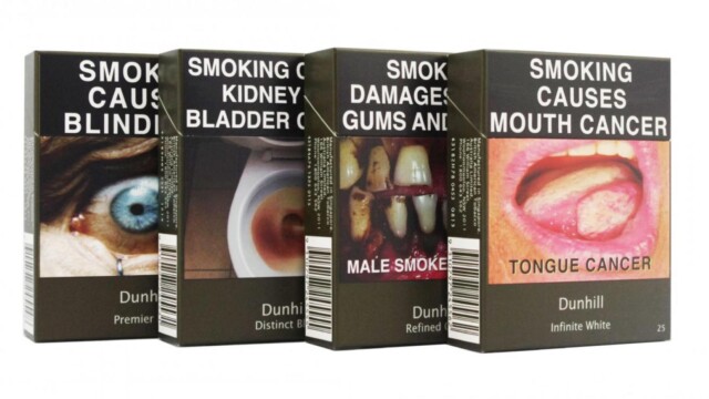 世界范围内的控烟运动,逐渐开始改变人们对吸烟的认知。社会进步的步伐缩小了吸烟者的空间。十九世纪三四十年代吸烟标志着独立、魅力、创新、灵感、深邃等美好的字眼和形象,那么如今代表的是病态的成瘾与依赖,代表是各种可怕的癌症与死亡。各国控烟运动的开展,逐渐让人们认识到吸烟是一种反社会的行为,是需要进行干预与限制的。 以下图片是国外香烟包装,其中有的内容会引起不适与恶心,请观看前调整情绪。